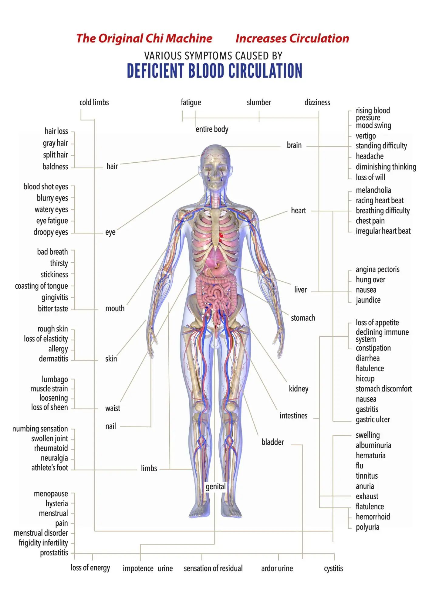 The Original Chi Machine aids in the healing and prevention of such disorders by maximizing the oxygenation of your body’s cells.